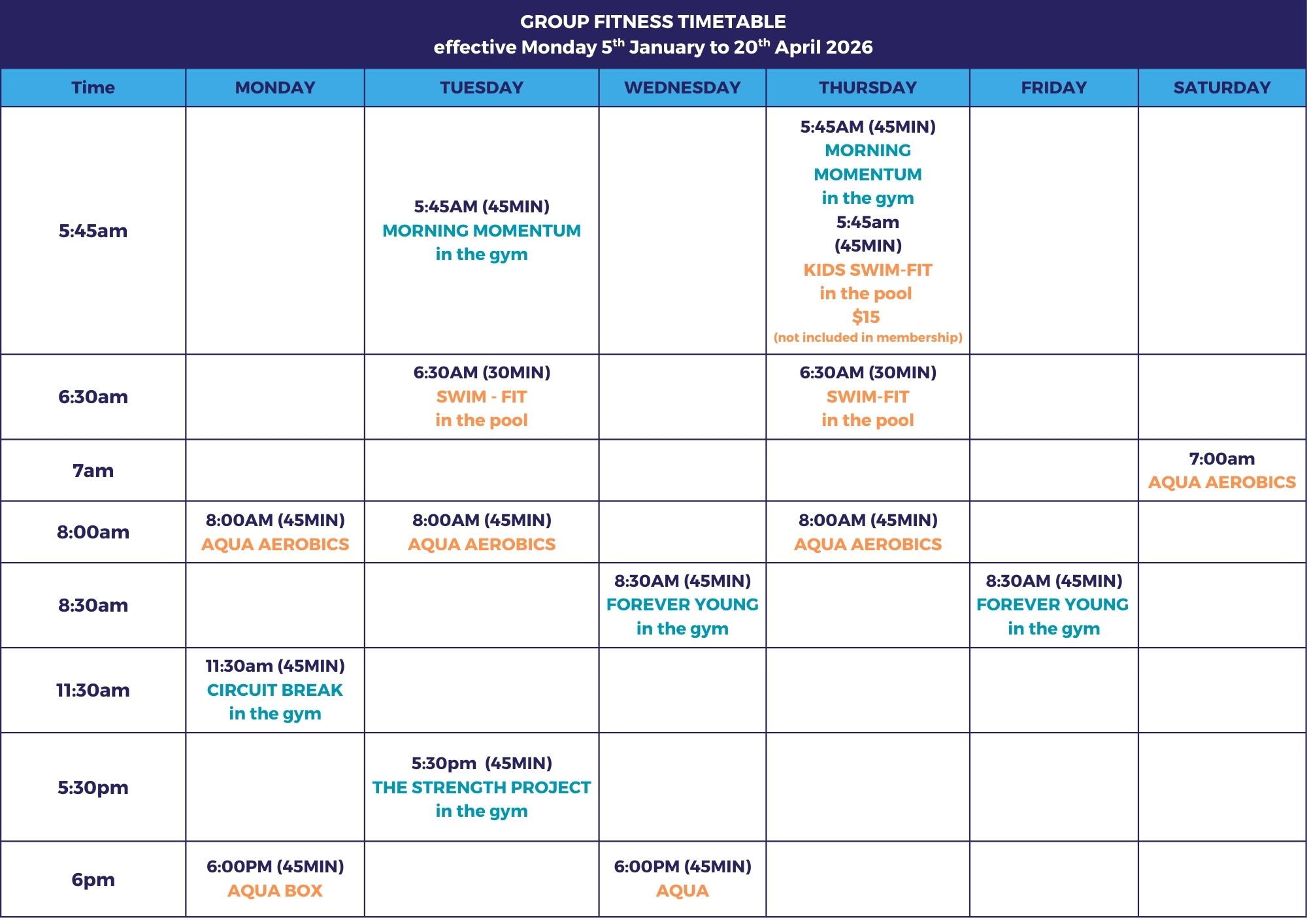 Timetables Group Fitness Timetable Swim Squad Timetable Visit www.nextleveltricoaching.com.au for timetable and more details